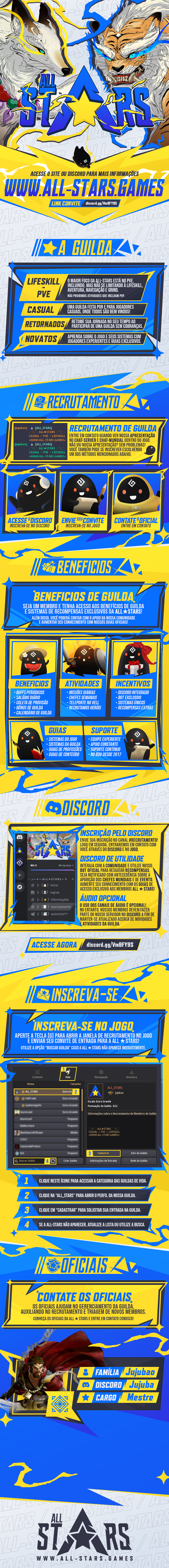 Fundada em 20 de Setembro de 2017, a ALL-STARS nasceu da necessidade de uma guilda que orienta e prepara seus membros